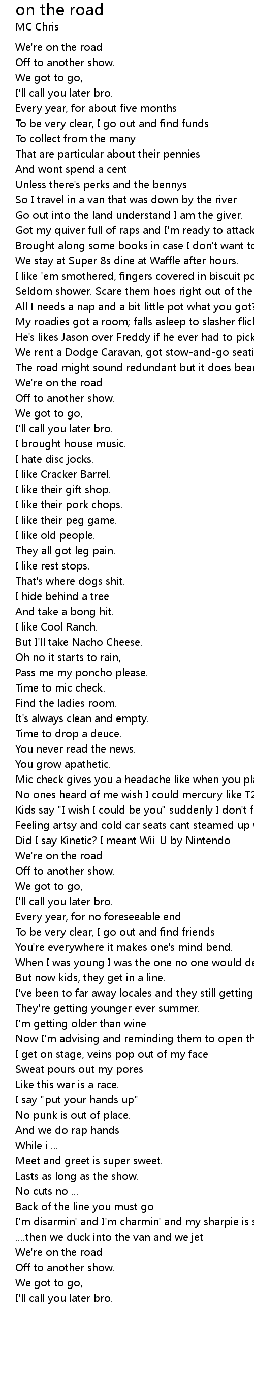 | Got my quiver full of raps and I'm ready to attack. | |