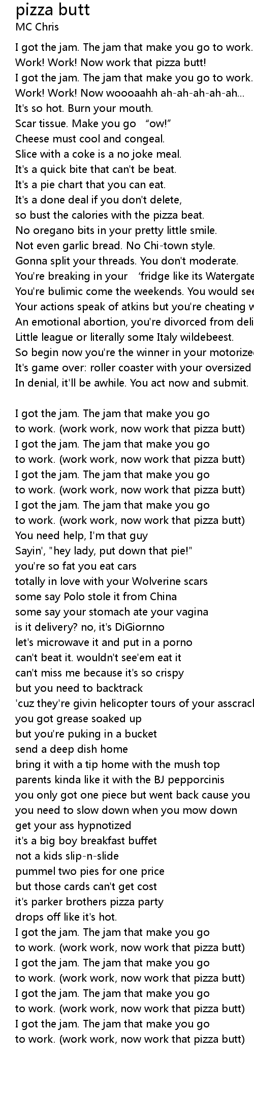 | to work. work work, now work that pizza butt |