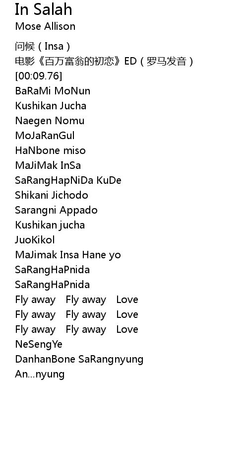 | [00:07.35] | diàn yǐng bǎi wàn fù wēng de chū liàn ED luó mǎ fā yīn |