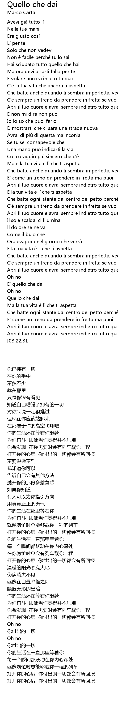 | [01:34.52] | E' come un treno da prendere in fretta ma puoi |