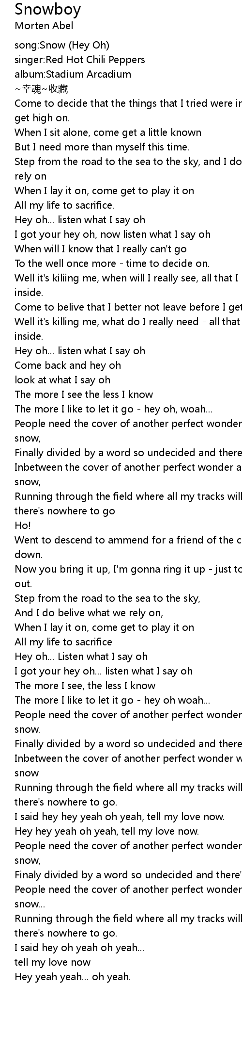 | [00:00.00] | song: Snow Hey Oh |