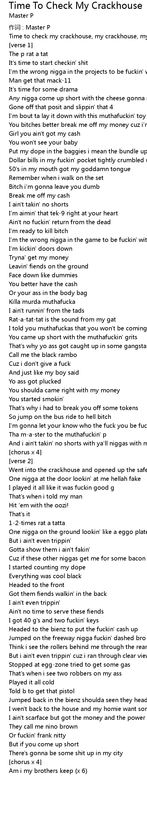 | Time to check my crackhouse, my crackhouse, my crackhouse | |
