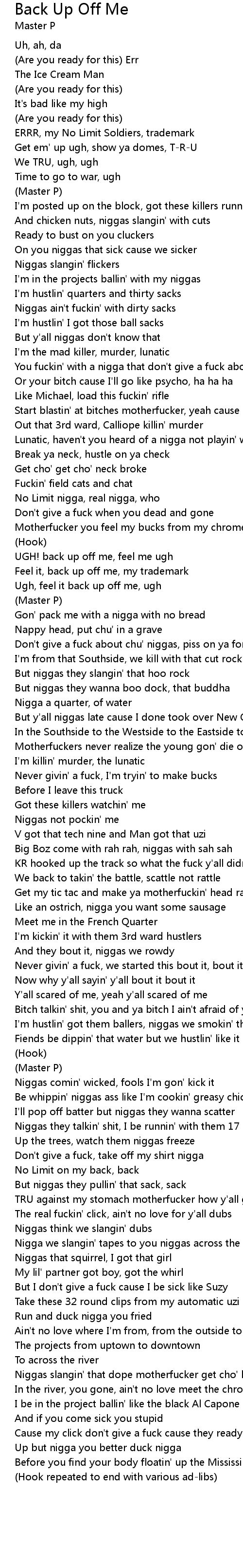 Don't give a fuck about chu' niggas, piss on ya forehead |
