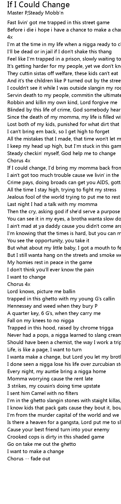 But I still wanta hang on the streets and smoke weed with the O.G.'s |