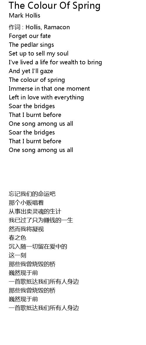 | Song | The Colour Of Spring |