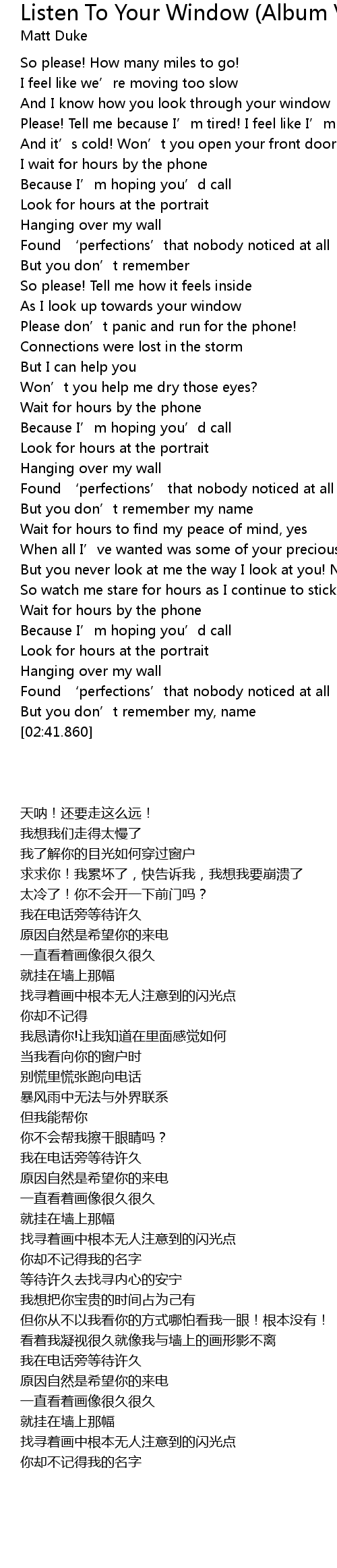 | [00:37.500] | And it' s cold! Won' t you open your front door? |