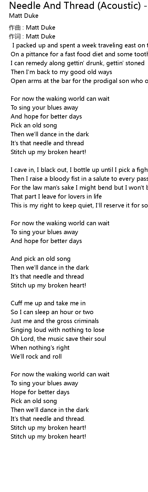 | Song | Needle And Thread (Acoustic) - unplug |
