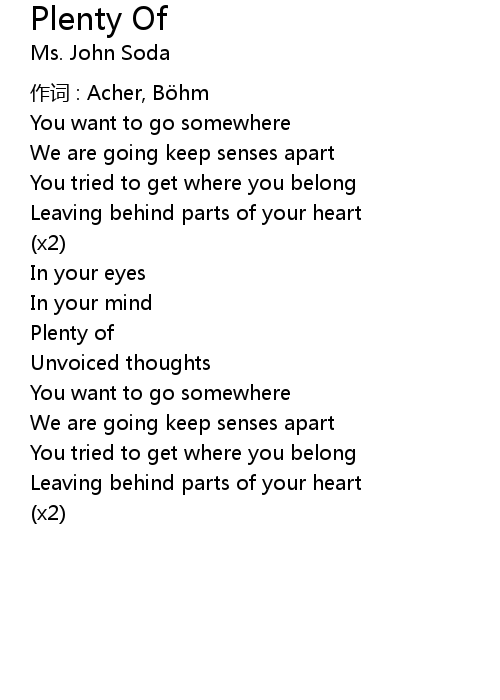 | Song | Plenty Of |