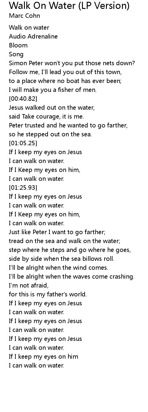 | [01:22.39] | I can walk on water. |