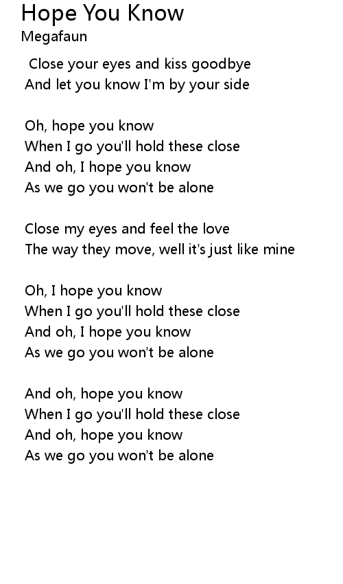 | And oh, I hope you know | |