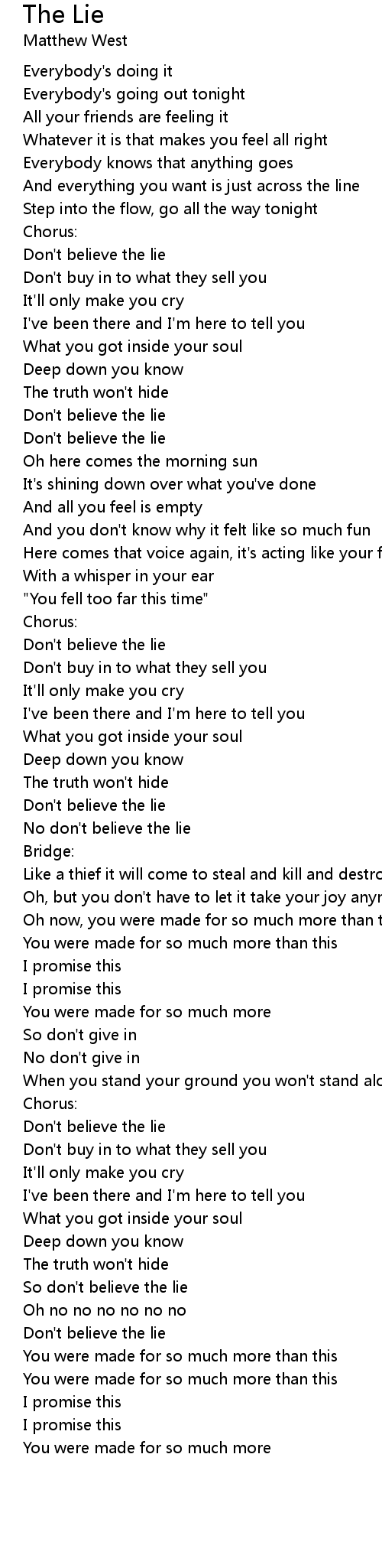 So don't believe the lie |