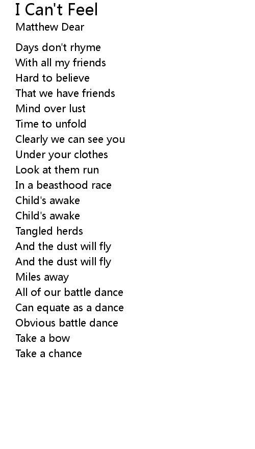 | Song | I Can't Feel |