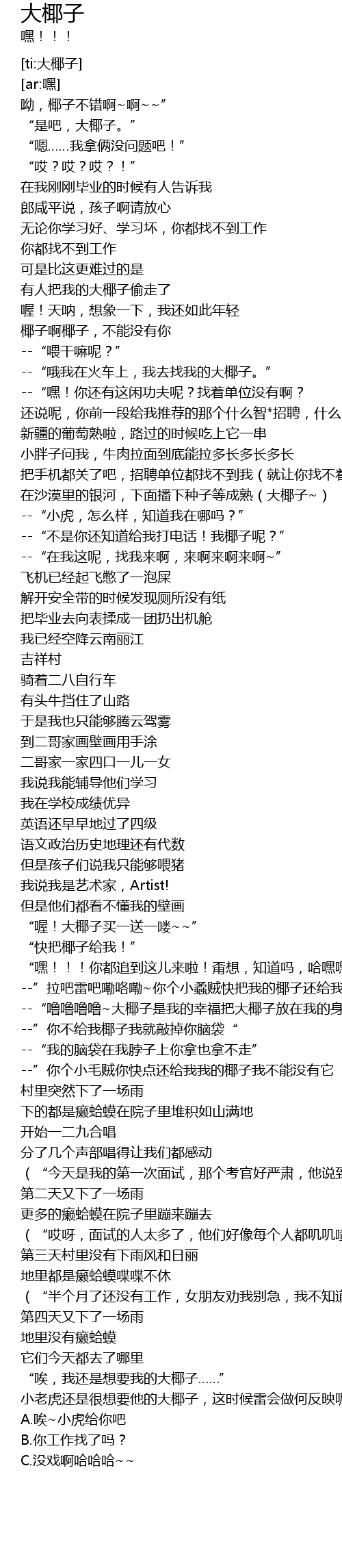 | [00:34.581] | --“哦我在火车上,我去找我的大椰子。” |