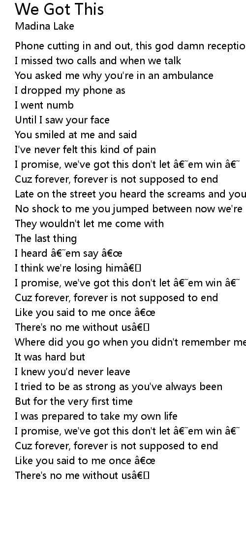 | I promise, we' ve got this don' t let em win | |