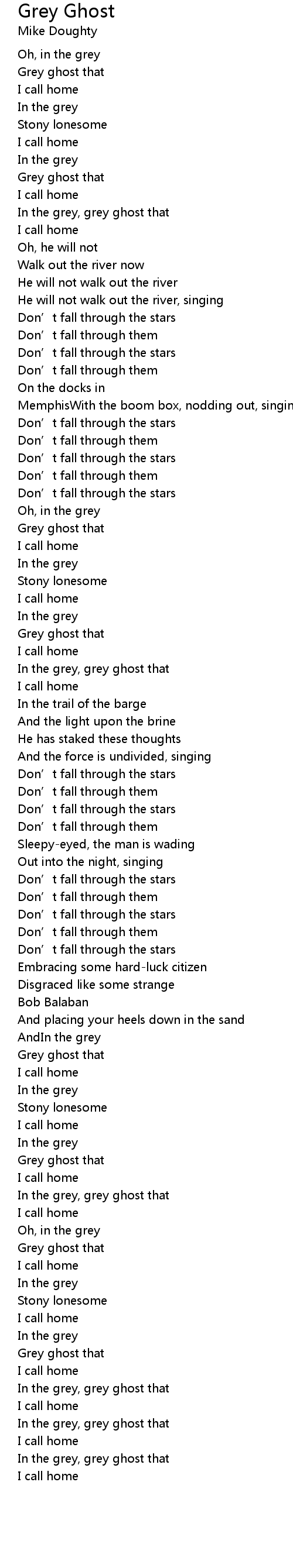 | In the grey, grey ghost that | |
