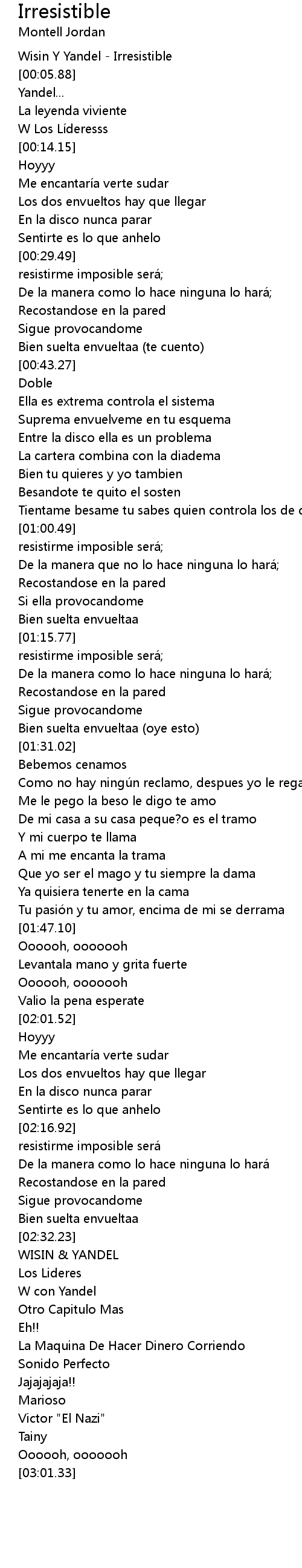 | [00:04.88] | Wisin Y Yandel Irresistible |