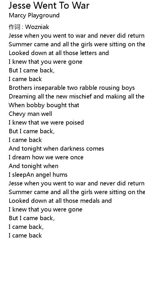 | Jesse when you went to war and never did return | |