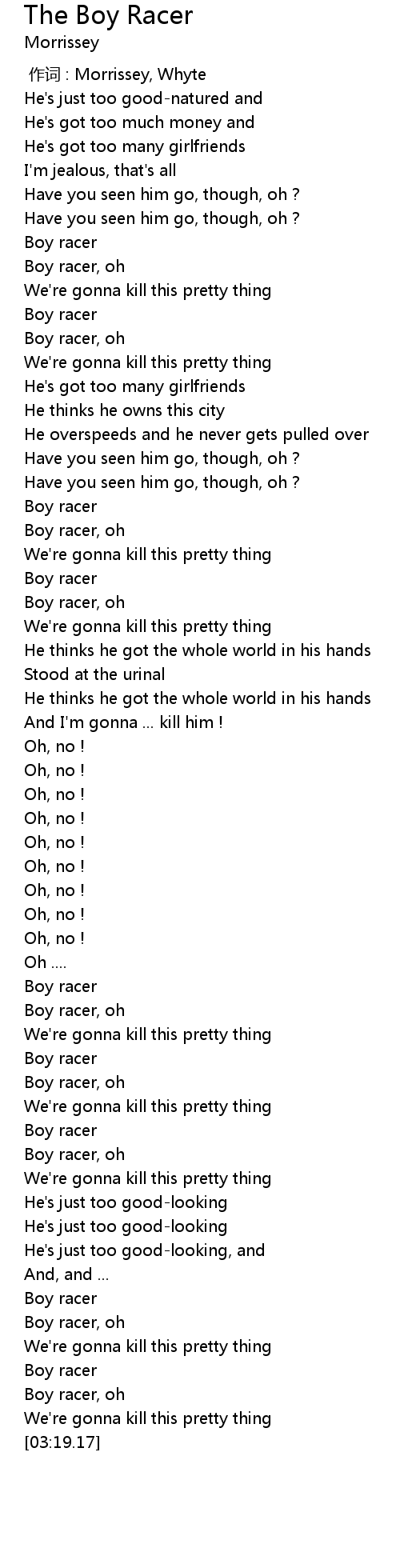 | [03:05.17] | Boy racer, oh |