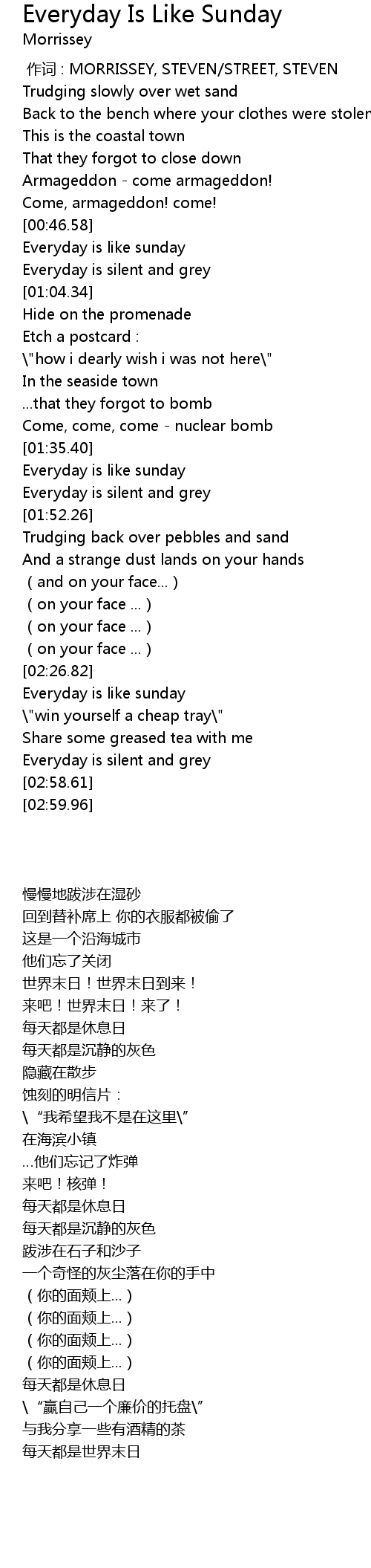 | [00:00.00] | 作词 : MORRISSEY, STEVEN/STREET, STEVEN |