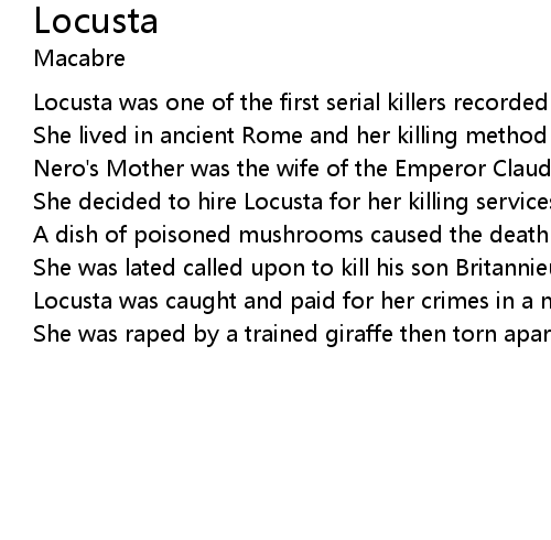 | Locusta was one of the first serial killers recorded in history | |