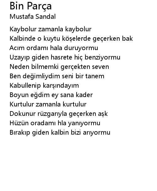 | Song | Bin Parça |