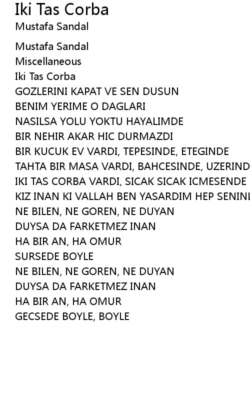 | Song | Iki Tas Corba |