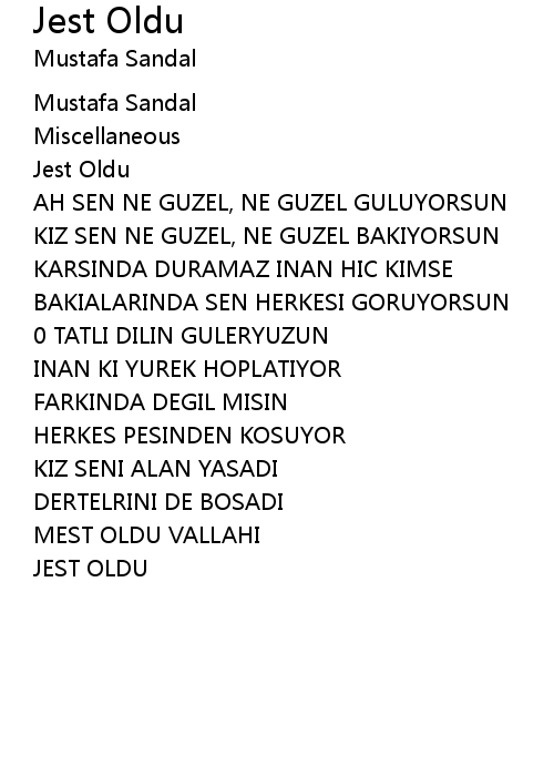 | Song | Jest Oldu |
