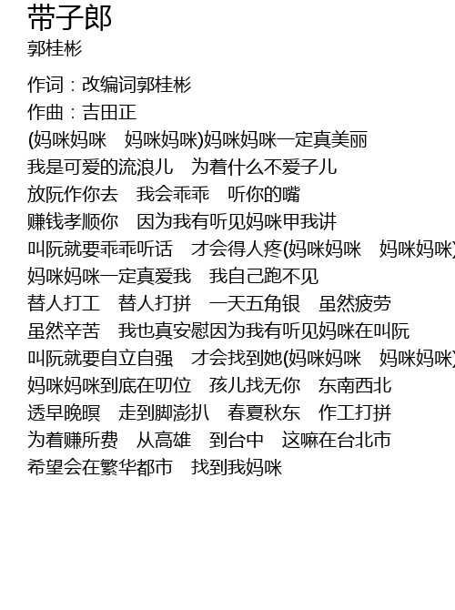 | 妈咪妈咪到底在叨位 孩儿找无你 东南西北 | |