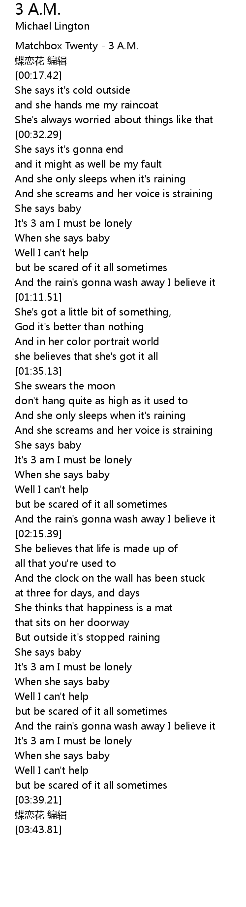 | [00:00.00] | Matchbox Twenty - 3 A.M. |