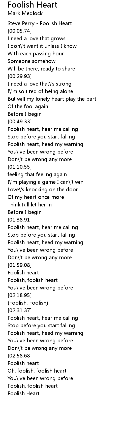 Oh, foolish, foolish heart |