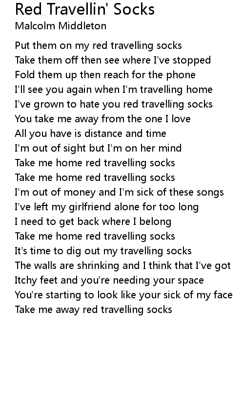 Put them on my red travelling socks |