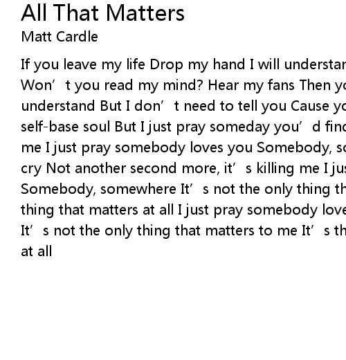 | Song | All That Matters |