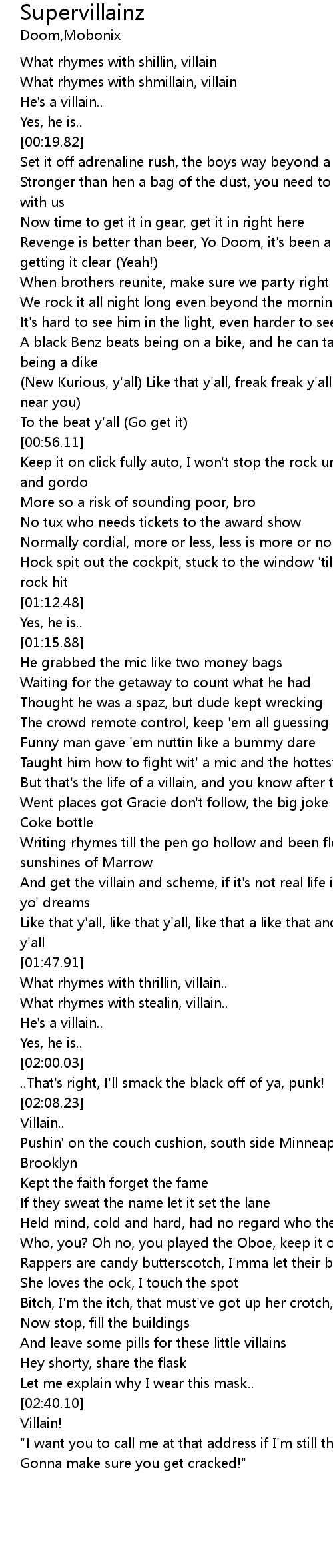 | [01:28.42] | But that's the life of a villain, and you know after that, chilling |