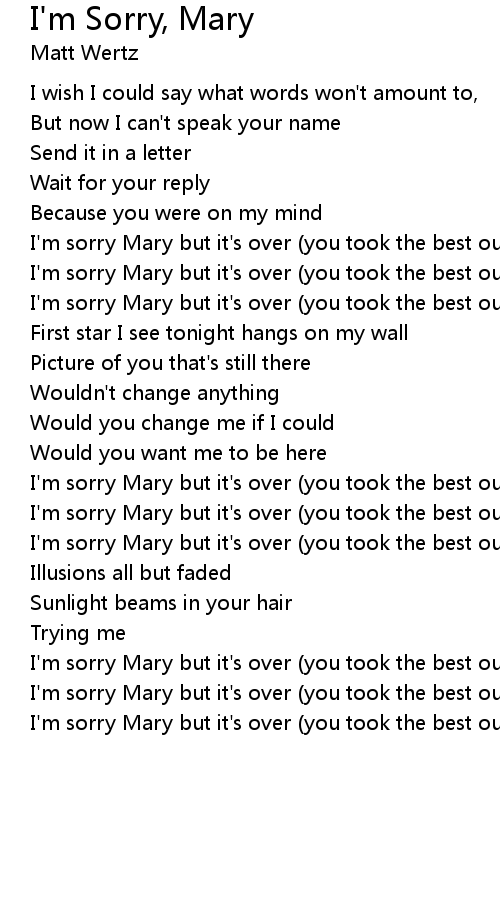 I'm sorry Mary but it's over (you took the best out of me) |