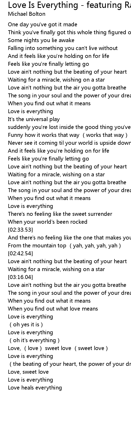 | [03:25.64] | Love ain't nothing but the air you gotta breathe |
