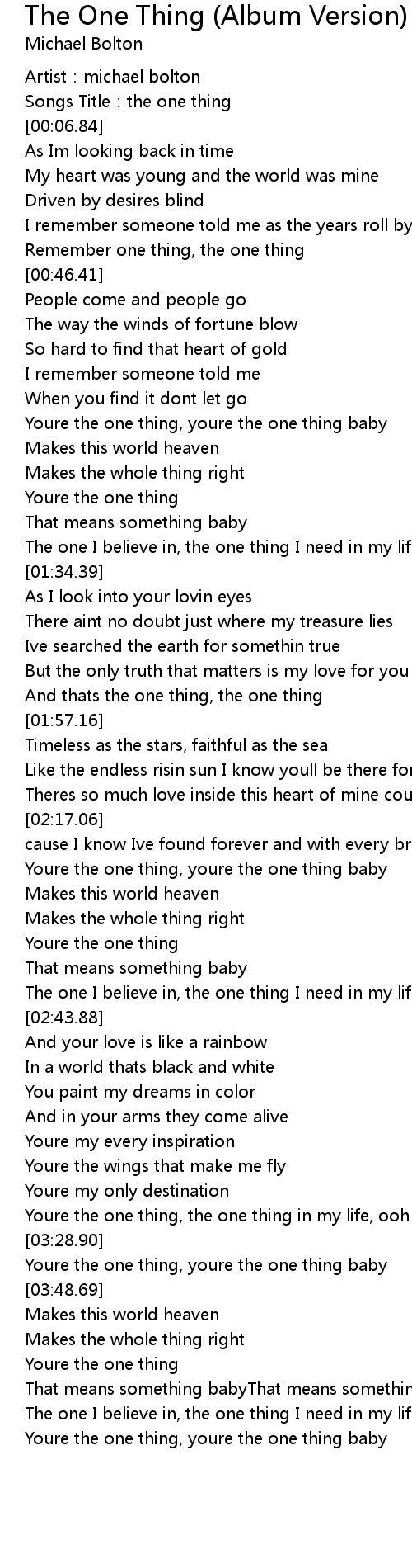 | [04:05.55] | Youre the one thing, youre the one thing baby |