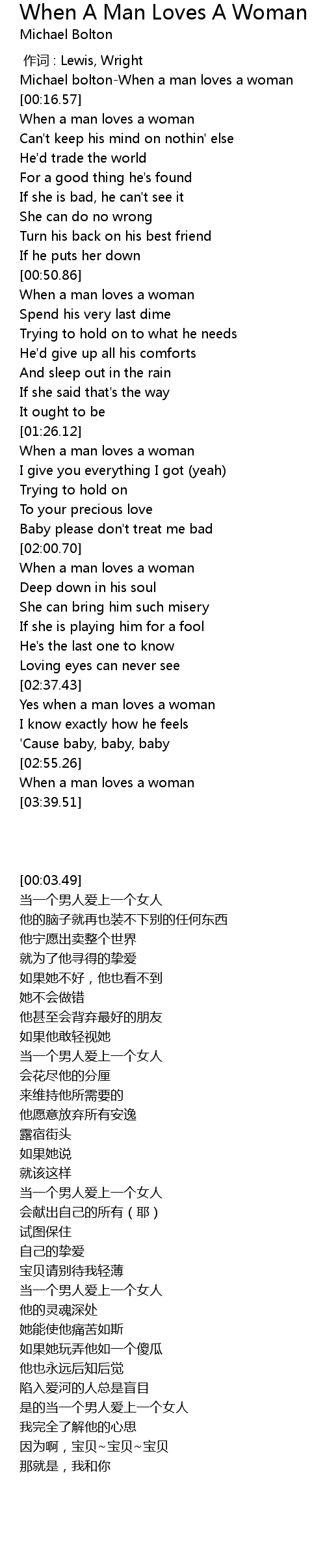 | [00:03.49] | Michael bolton-When a man loves a woman |