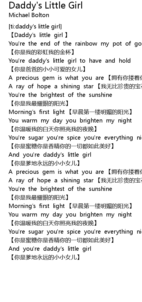 | [00:19.600] | You're daddy's little girl to have and hold 【你是爸爸的小小可爱的女儿】 |
