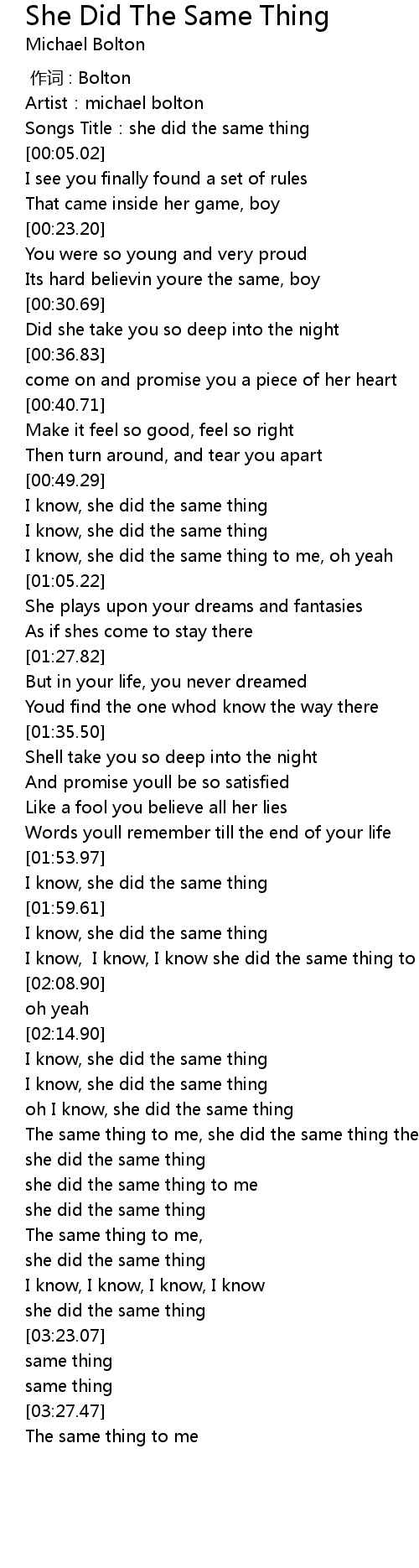 | [03:02.45] | The same thing to me, she did the same thing the same thing to me |