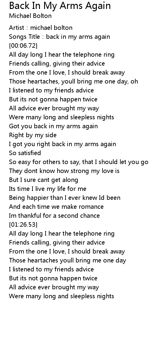 | [00:04.09] | Songs Title: back in my arms again |