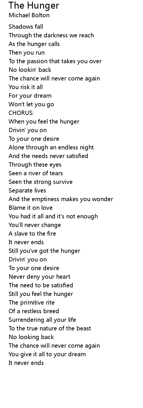 Still you feel the hunger |