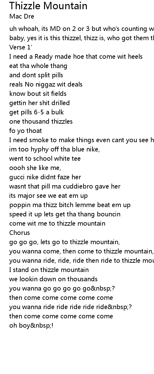 you wanna ride, ride, ride then ride to thizzle mountain, |
