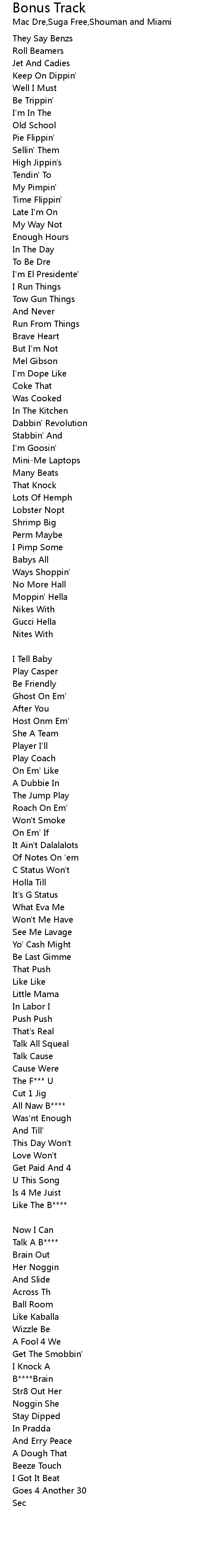 | Song | Bonus Track |