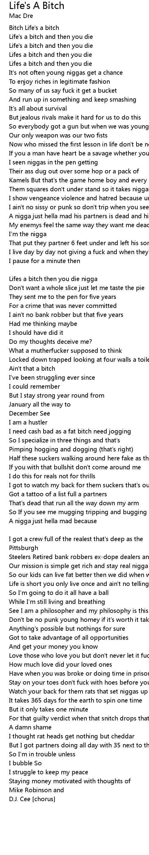 Lifes a bitch and then you die [Chorus] |
