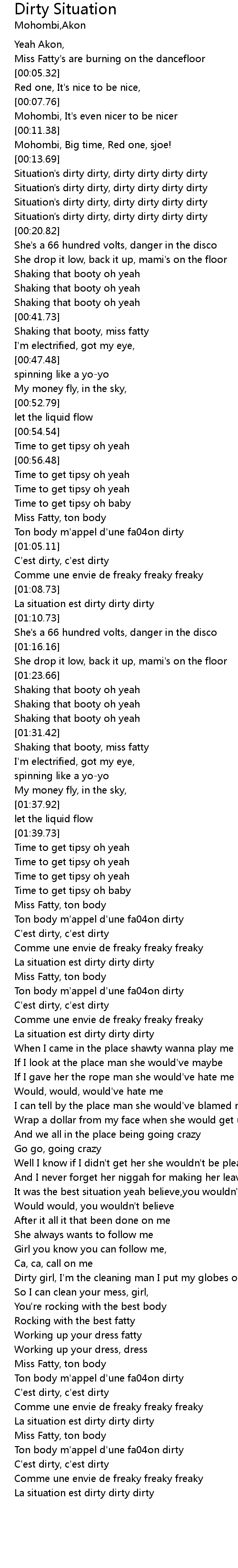| [00:18.51] | Situation's dirty dirty, dirty dirty dirty dirty |