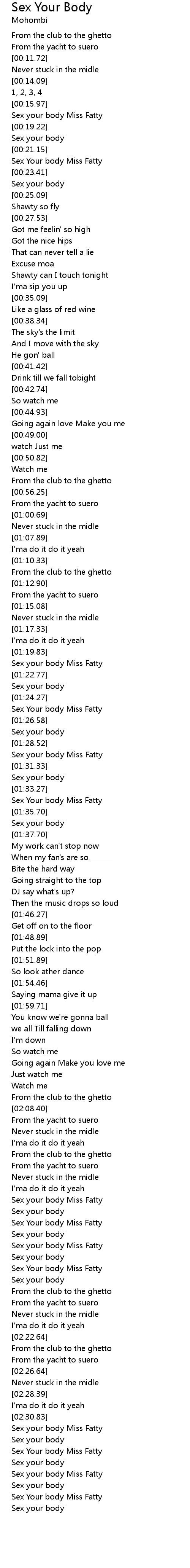 | [02:17.70] | Sex your body Miss Fatty |