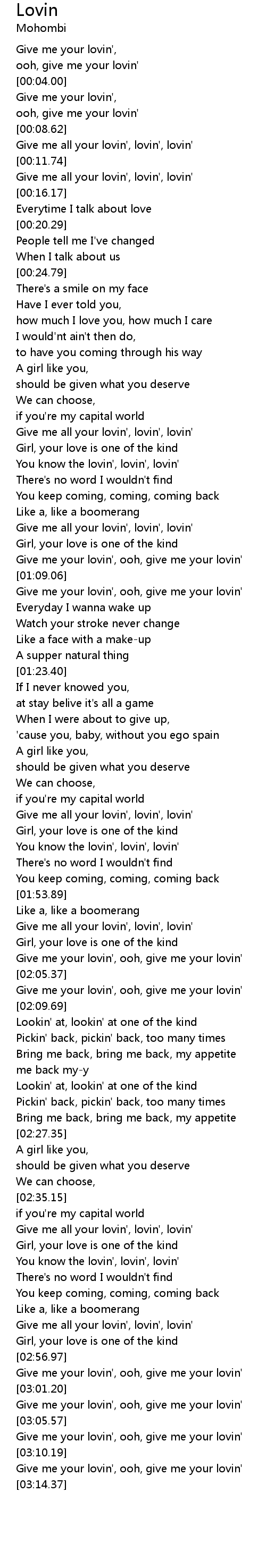 | [03:06.57] | Give me your lovin', ooh, give me your lovin' |