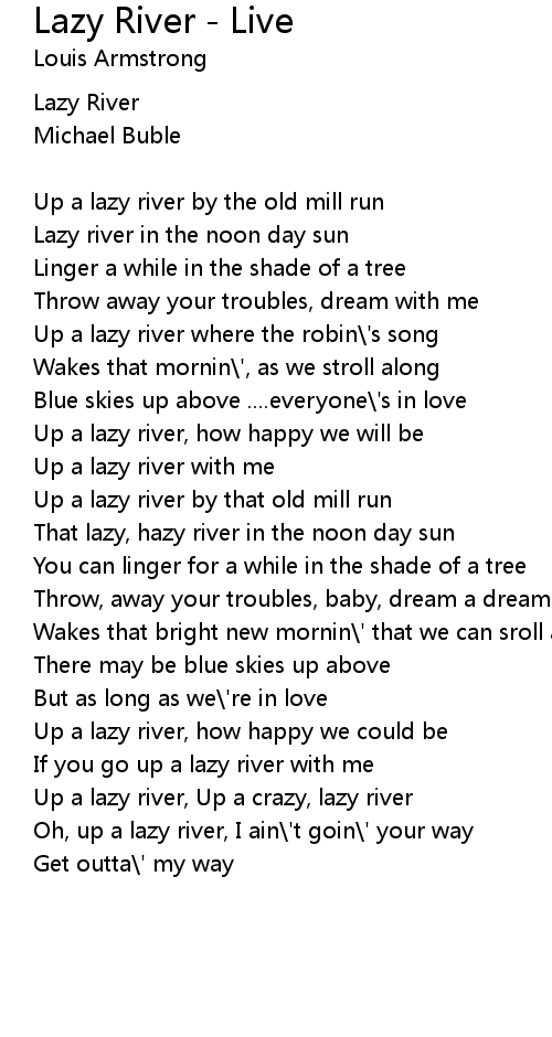 Up a lazy river where the robin\'s song |