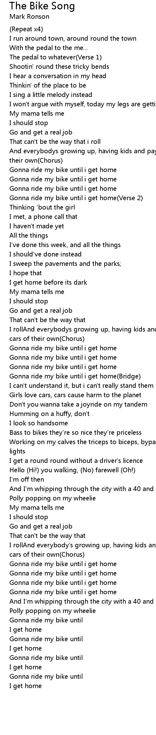 Gonna ride my bike until i get home(Verse 2) |