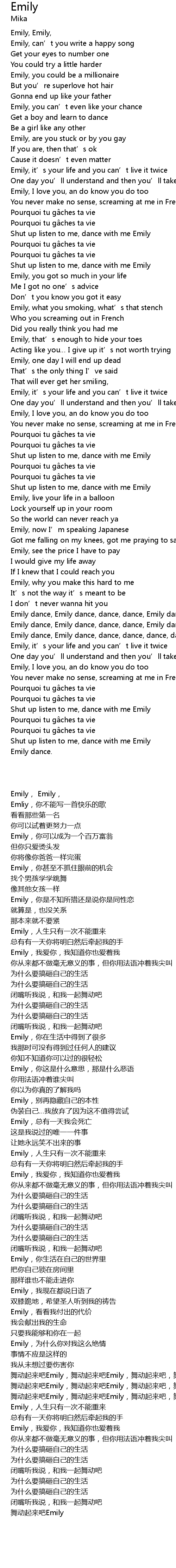 | [02:50.610] | Emily dance, Emily dance, dance, dance, dance, dance, dance |